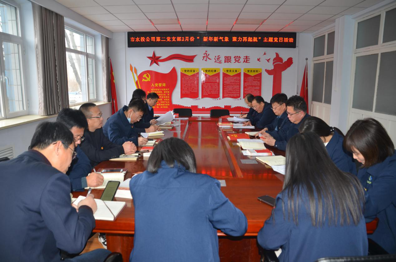 按照市水投公司黨委統(tǒng)一部署要求,第二黨支部2022年2月7日下午組織全體黨員、積極分子、群眾代表開展了“新年新氣象,聚力再起航”主題黨日活動(dòng),會(huì)議由支部書記吳爭(zhēng)兵主持。