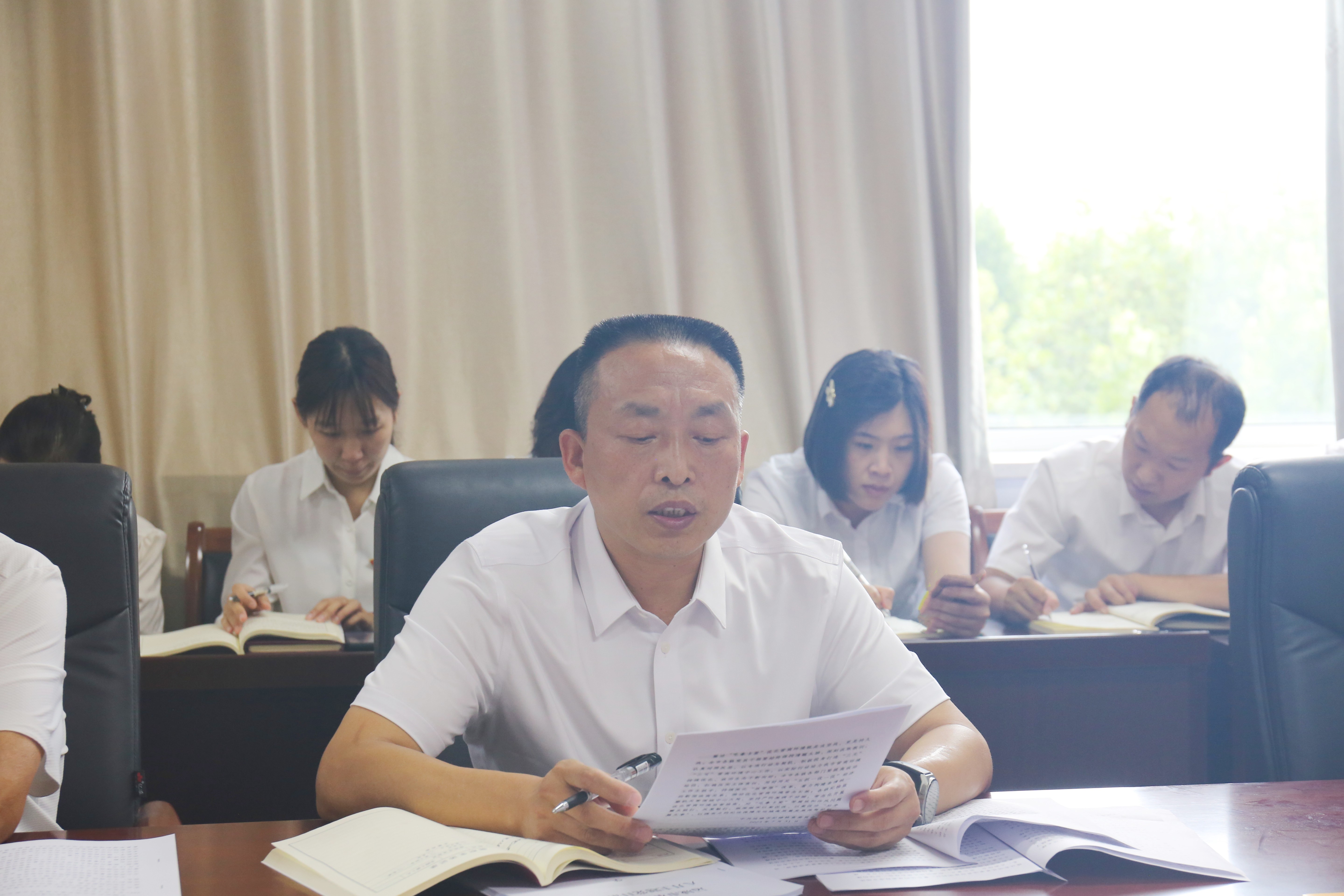 會上支部書記帶領全體黨員齊誦《黨章》總綱部分。支部黨員認真學習了習近平總書記在中共中央政治局第六次集體學習時發(fā)表的重要講話精神;習近平總書記在中央全面深化改革委員會第二次會議上發(fā)表的重要講話精神;習近平總書記對網(wǎng)絡安全和信息化工作作出的重要指示精神;習近平總書記在全國生態(tài)環(huán)境保護大會上發(fā)表的重要講話精神;第13期、第14期《求是》雜志刊發(fā)的習近平總書記重要文章;省委書記藍佛安在省委常委會會議暨省委主題教育領導小組會議上的講話精神;中共山西省委十二屆六次全體會議精神;市委書記丁小強在五屆市委第82次常委會(擴大)會議上的講話精神;中國共產(chǎn)黨運城市第五屆委員會第五次全體會議決議,會議還傳達學習了《中共運城市紀律檢查委員會關于10起黨員干部“吃拿卡要”破壞營商環(huán)境典型案件的通報》。