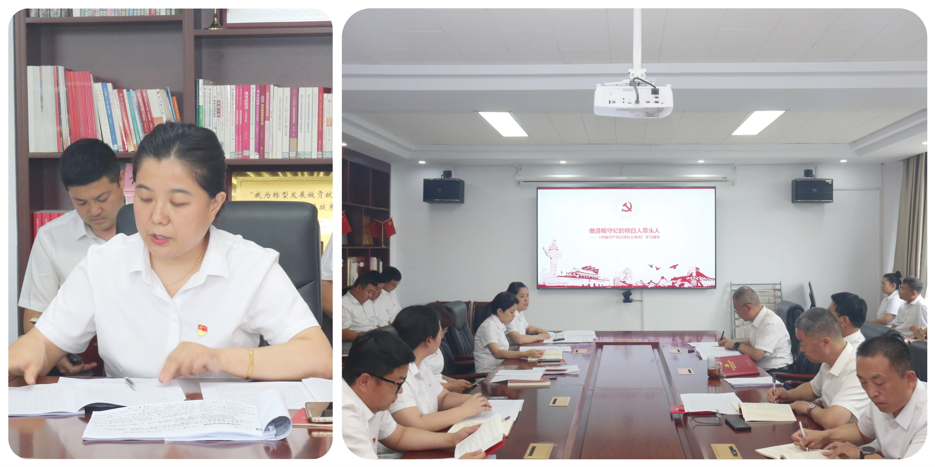 根據(jù)市委黨紀學習教育工作部署和學習月度安排,黨員干部結合自身崗位特點認真復習《條例》。支部副書記郝麗娜以《做遵規(guī)守紀的明白人帶頭人》為題,為全體黨員講授黨紀學習教育紀律黨課。黨課內(nèi)容詳實、寓意深刻,圍繞“嚴明黨的紀律的必要性、黨的紀律和規(guī)矩的核心要義、《條例》修訂的意義特點變化和如何做守紀律講規(guī)矩的黨務干部”四個方面進行闡述,要求廣大黨員干部要深刻認識紀律是管黨治黨的“戒尺”,切實以學紀知紀明紀促進遵紀守紀執(zhí)紀,依靠嚴明紀律在工作中走在前做表率,要善始善終抓好黨紀學習教育,把黨紀學習教育激發(fā)的動力轉化為扛牢責任、真抓實干的實績實效。