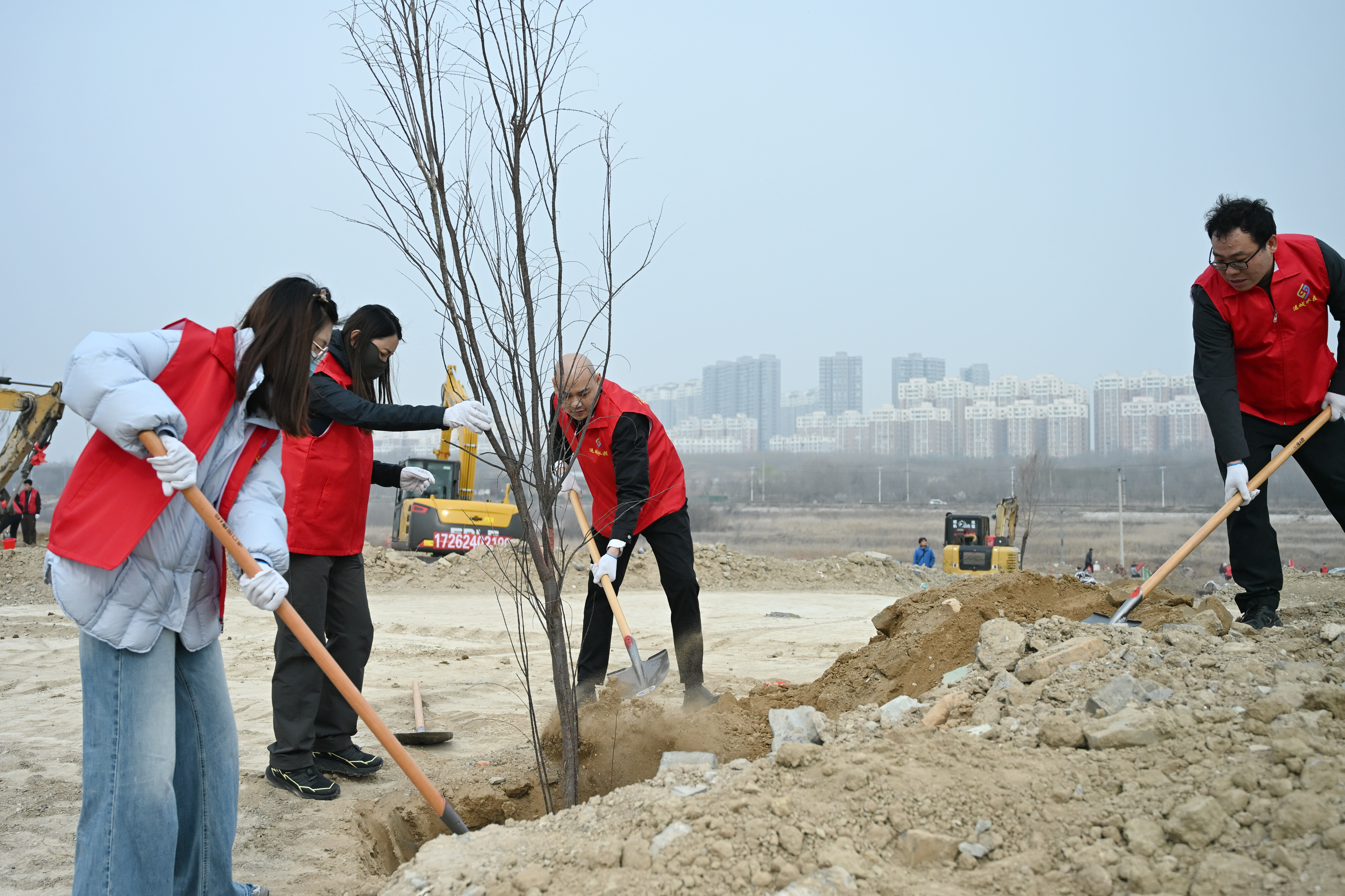 上午9時(shí),植樹活動(dòng)現(xiàn)場(chǎng)呈現(xiàn)一派熱火朝天的勞動(dòng)景象。公司領(lǐng)導(dǎo)率先垂范,與黨員干部一起揮鍬鏟土、扶苗填坑、培土澆水,大家分工協(xié)作,干勁十足,每一道工序都一絲不茍,認(rèn)真細(xì)致。經(jīng)過(guò)兩個(gè)多小時(shí)的辛勤勞動(dòng),50余株樹苗在鹽湖“安家落戶”,迎風(fēng)挺立,為初春的鹽湖增添了勃勃生機(jī)。