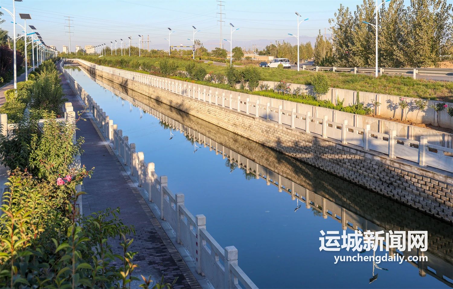 從市區(qū)沿姚暹渠,一路向東,過(guò)安邑至空港,“一泓清水穿城過(guò)”的生態(tài)廊道美景已然呈現(xiàn):