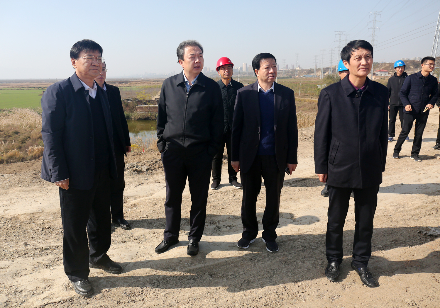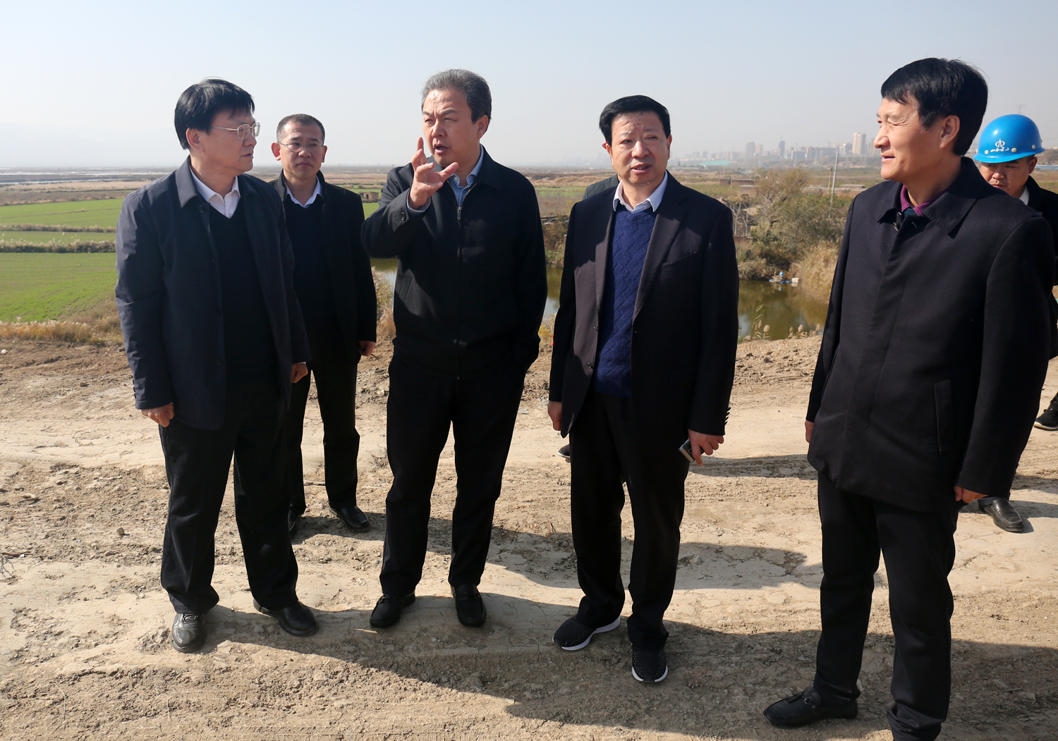 11月2日上午,衛(wèi)再學(xué)副市長蒞臨我公司鴨子池項目進行調(diào)研, 現(xiàn)場聽取了公司董事長崔作銘關(guān)于項目進展情況的匯報,并進行實地踏勘,在詳細了解鴨子池水位高程、中水排放問題以及大壩安全問題后,他強調(diào),在保證工程質(zhì)量安全的情況下,要加快施工進度。關(guān)于項目排水問題,要盡快與環(huán)保部門對接,協(xié)商解決。
