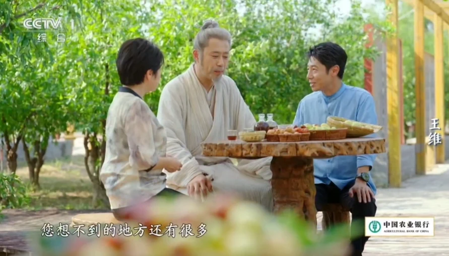 此外,節(jié)目中還體現(xiàn)了王維故鄉(xiāng)特產冬棗的產業(yè)化發(fā)展。勤勞智慧的棗農憑借著科學管理和先進技術,提升了冬棗產量與質量,并開發(fā)出棗花蜜、棗干、棗醋等一系列深加工產品。目睹當下人們富足無憂的生活,王維心中滿是羨慕與贊嘆,仿佛看到了心中那幅理想國的畫卷正在緩緩展開。